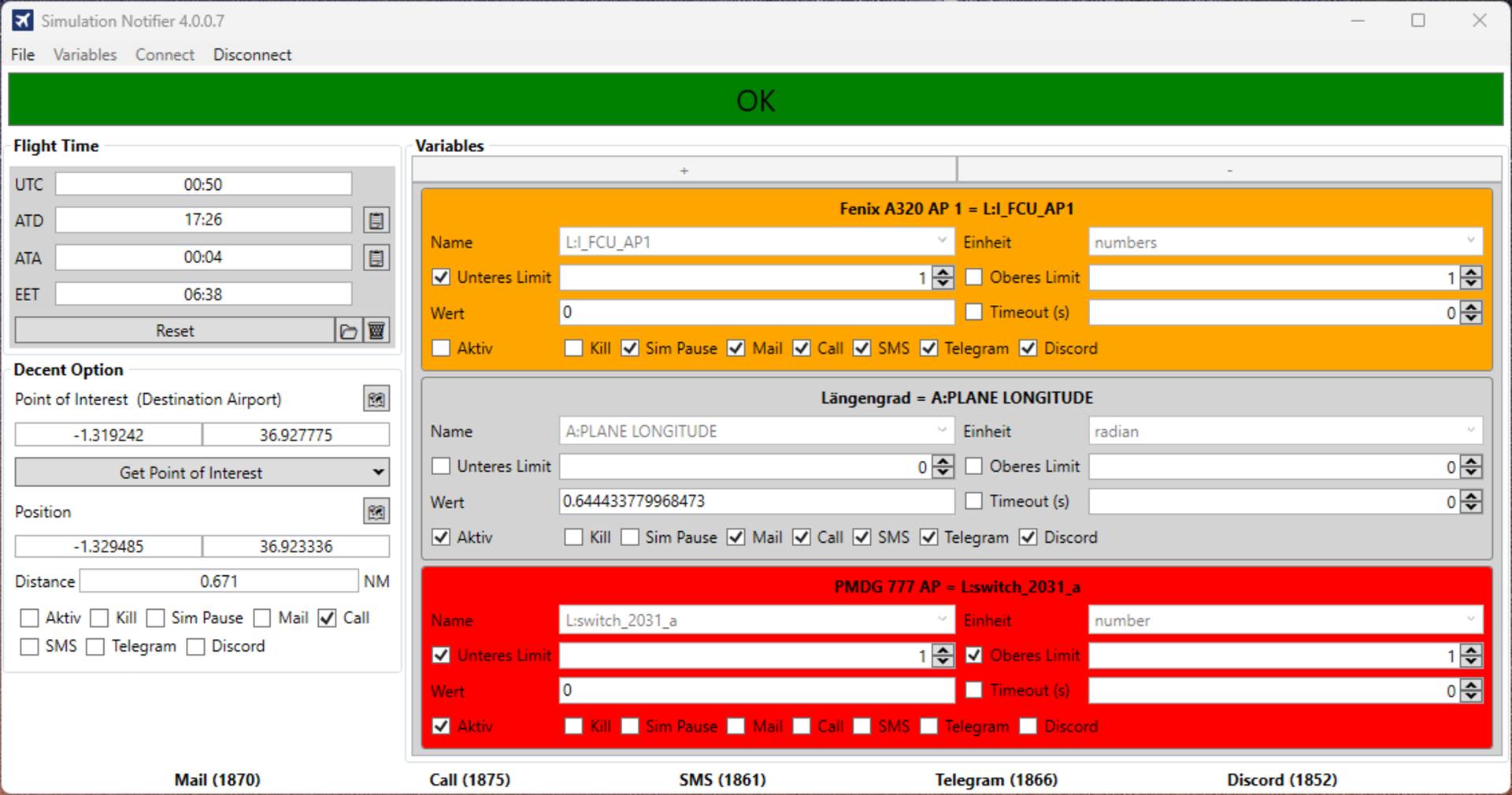 → Du legst selbst fest, wann du informiert wirst – z. B. beim Erreichen von 10.000 Fuß oder niedrigem Treibstoffstand.